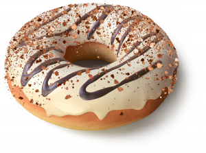 Un donut légèrement épicé au piment d’Espelette, revêtu d’un glaçage doux au chocolat blanc pour une touche sucrée et épicée inédite.