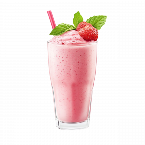 Un smoothie crémeux à base de fraises des bois fraîches et de fromage blanc de brebis local pour une boisson gourmande et sucrée.
